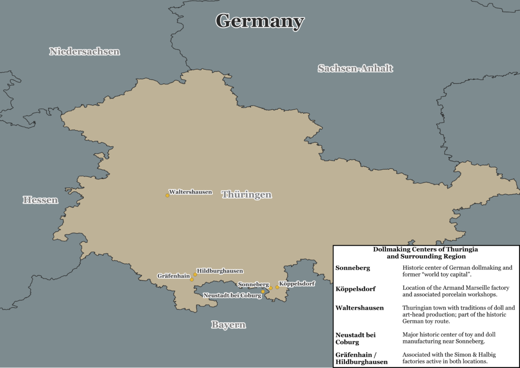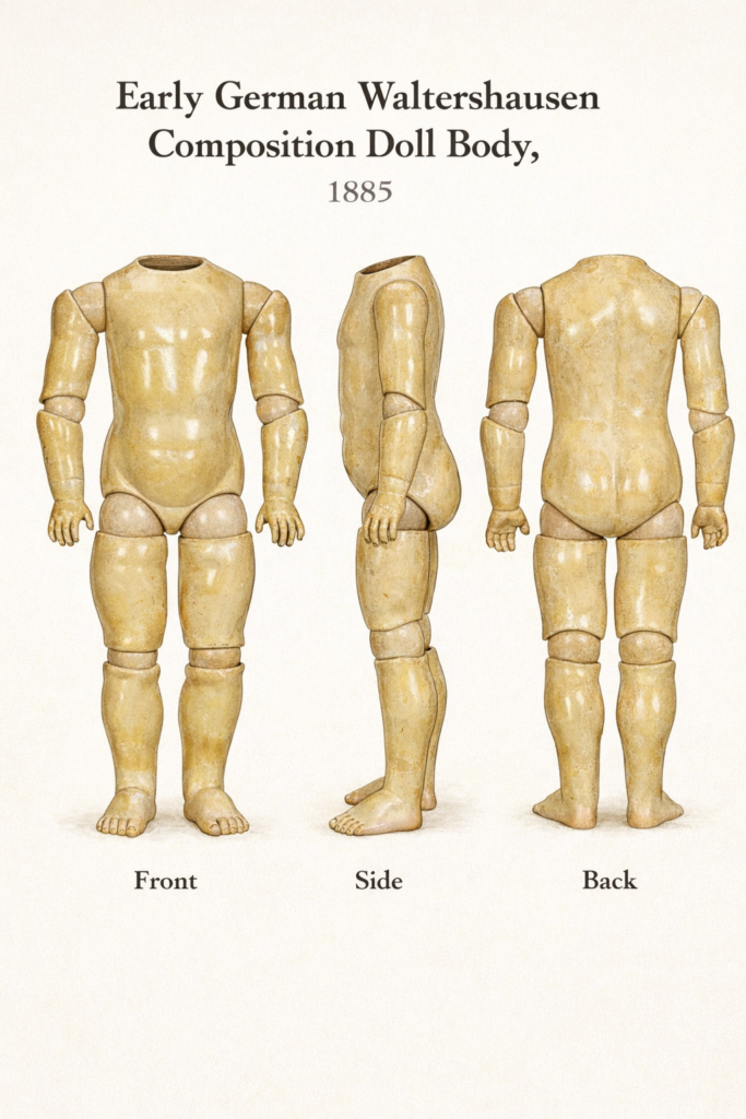 Key takeaway: Waltershausen is where the bodies were made. Sonneberg is where they were made into dolls and sold to the world. That is why in scientific descriptions, catalogs, and serious collections: “Waltershausen body, Sonneberg assembly” is an absolutely correct formula.