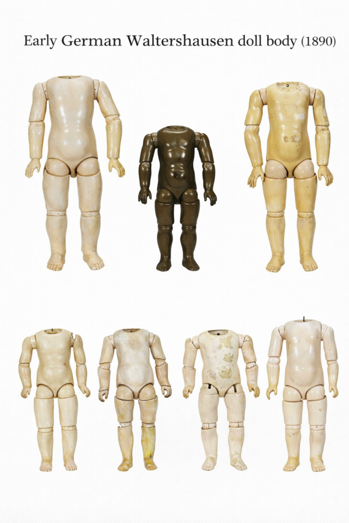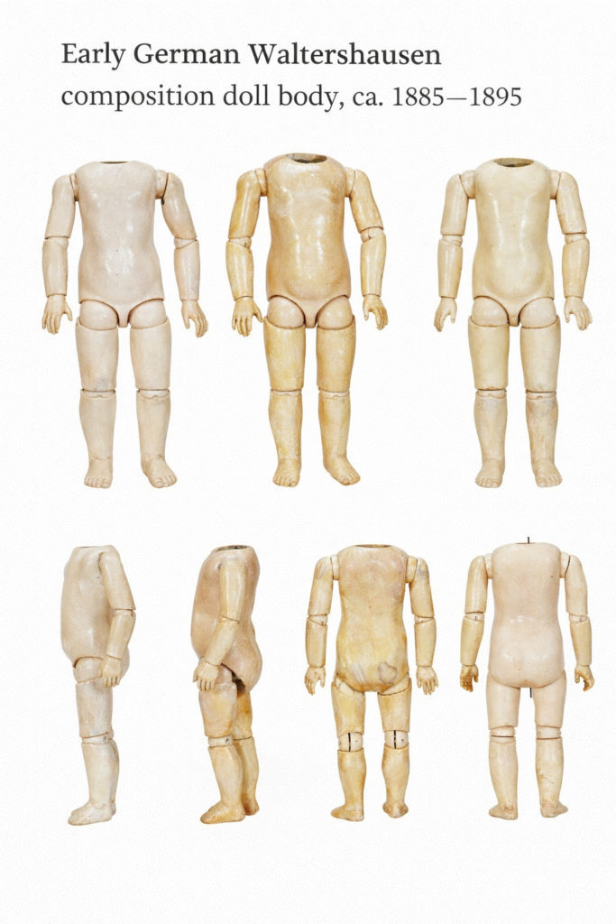 Waltershausen vs Sonneberg doll bodies (Thuringia, Germany, ca. 1885–1915).