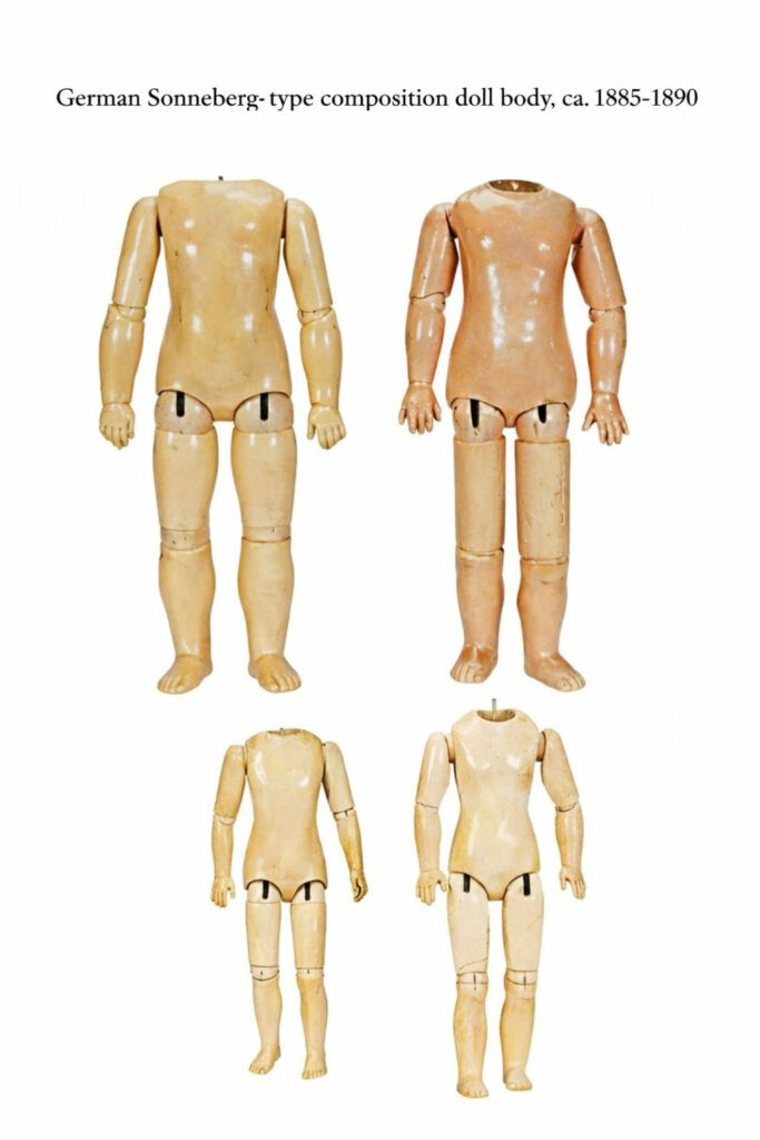 Key reference on antique doll bodies, focusing on construction, joints, proportions, and materials.