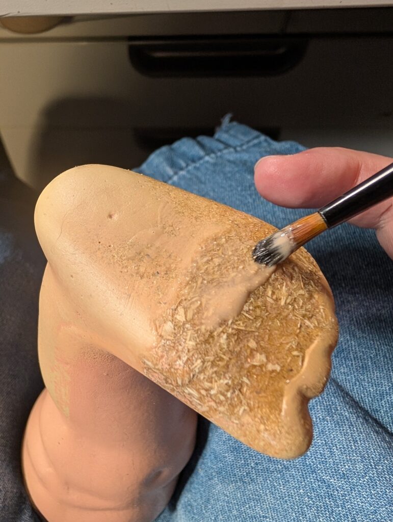 This is what the doll’s foot looks like after sanding with coarse-grained sandpaper.