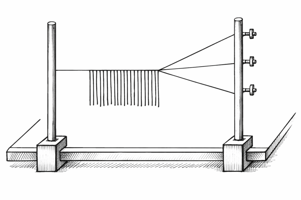 An approximate diagram of creating a wooden frame (tress-bank) for weaving tresses.