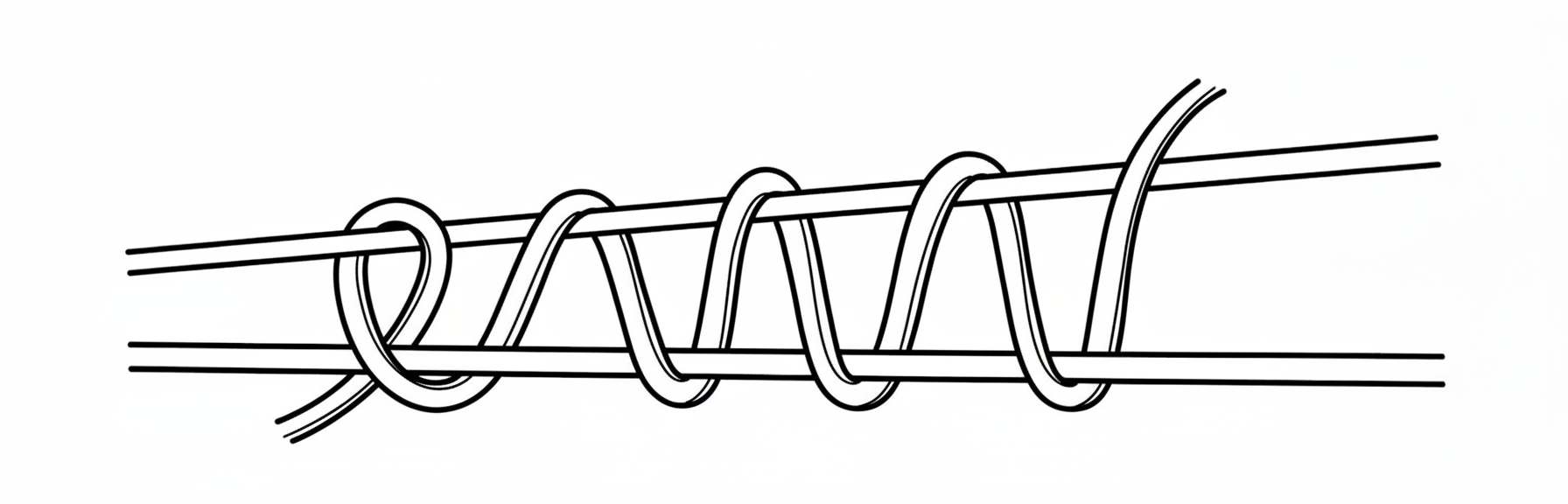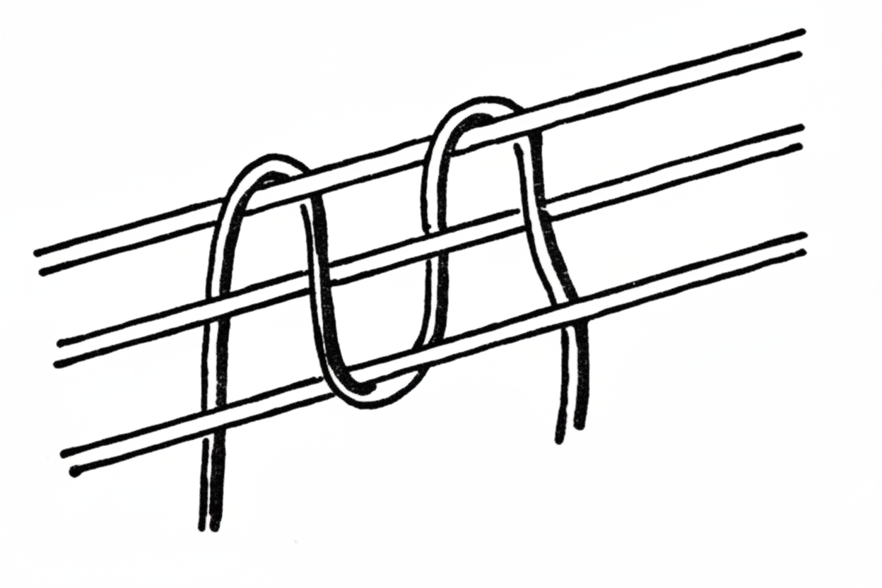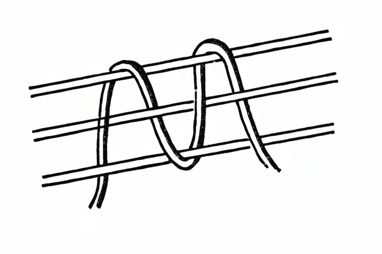 - Wrap the bottom thread around the two top ones and tighten tightly to prevent stretching (see image).