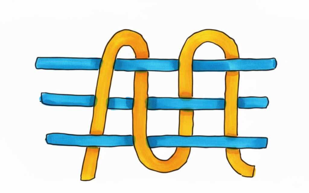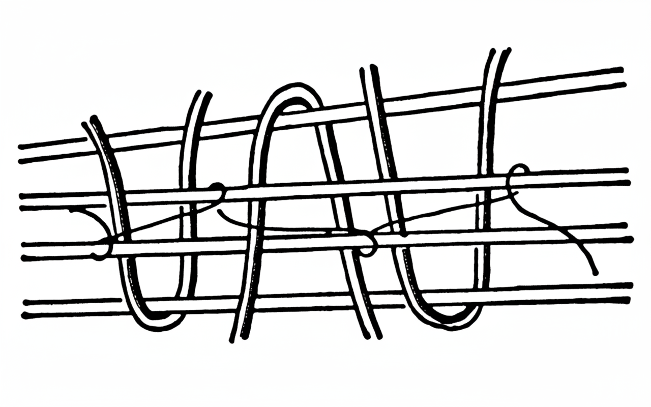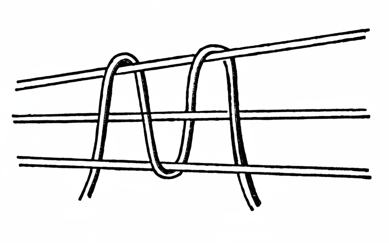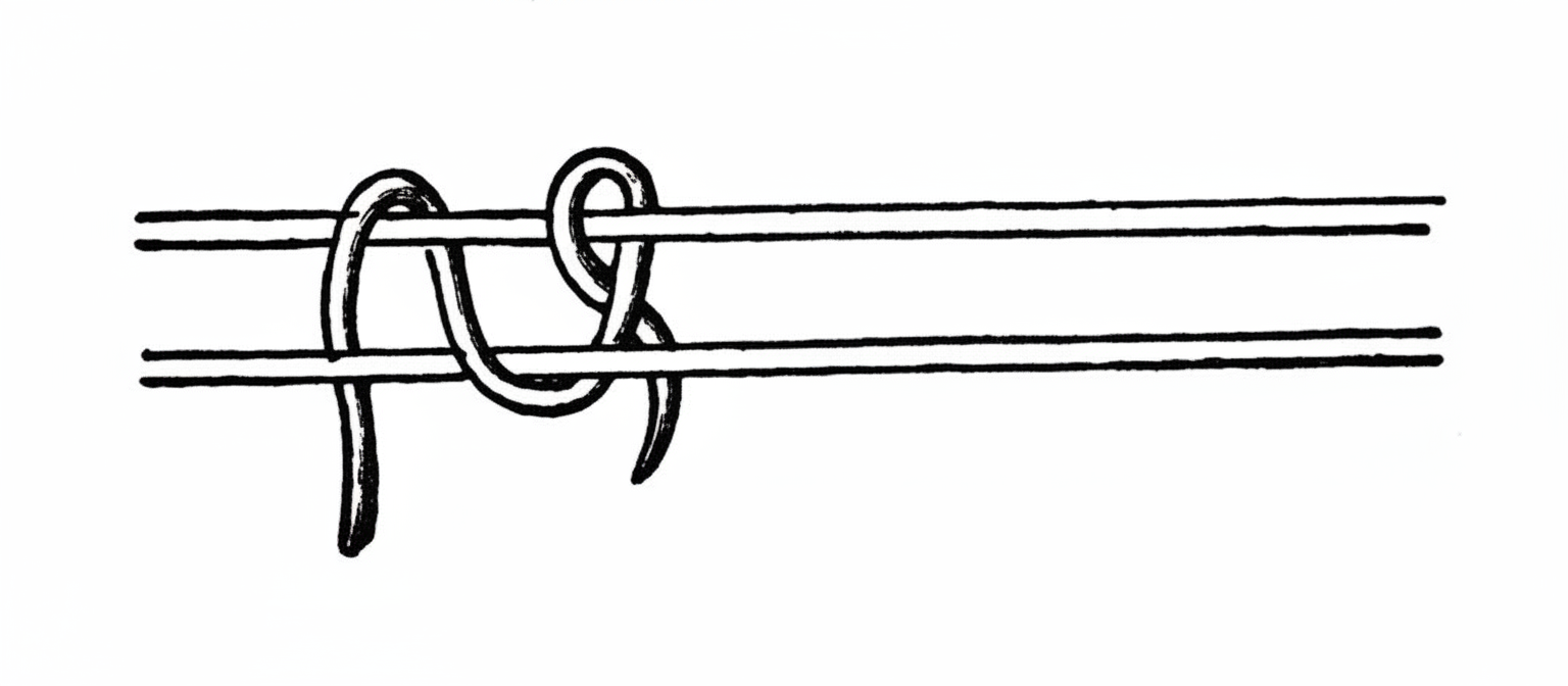 - Wrap the bottom thread around the two top ones and tighten tightly to prevent stretching (see image).
